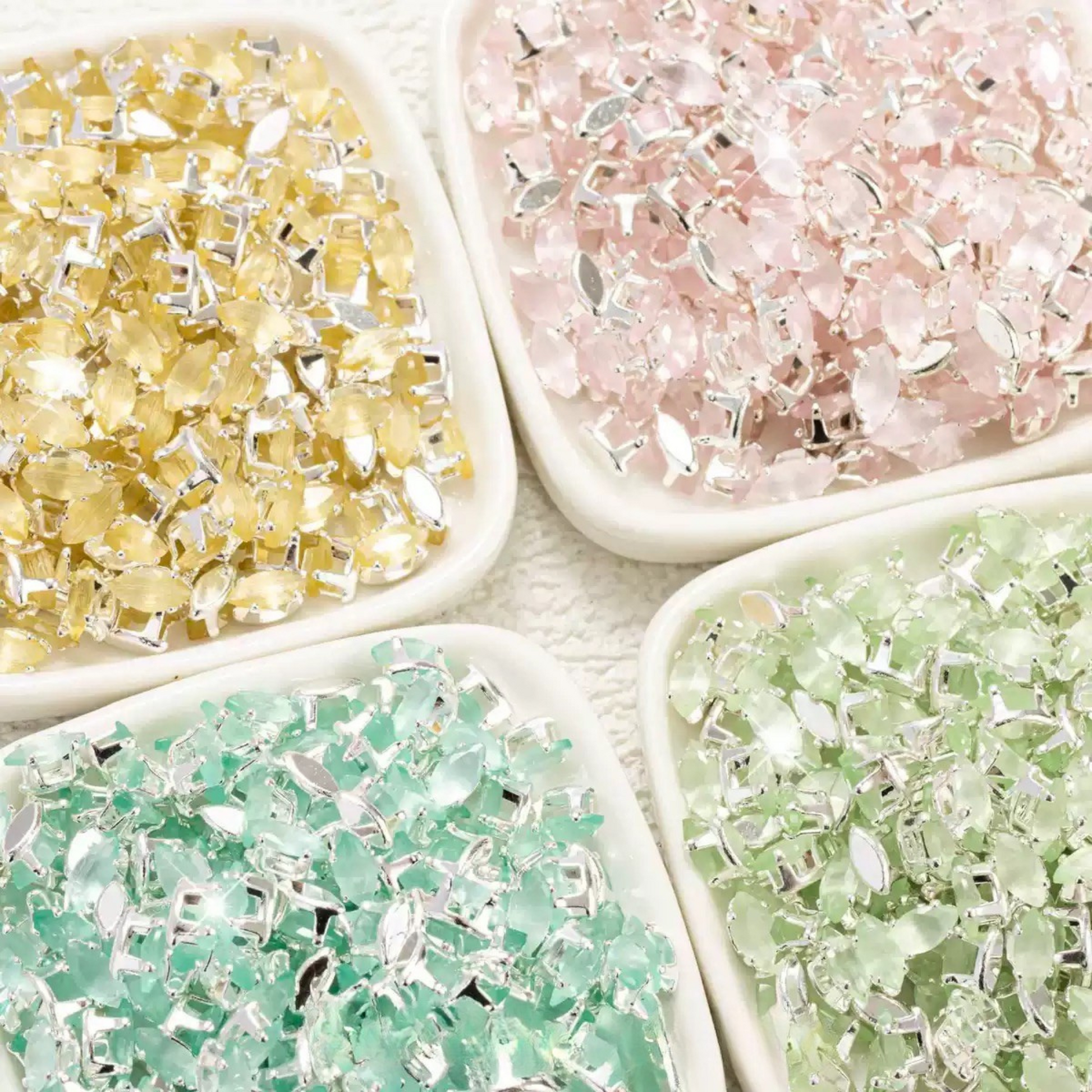 Add a dreamy, luminous touch to your jewelry with these cat eye marquise rhinestone beads, beautifully set in silver-tone claw settings. Their unique navette (marquise) shape and soft cat eye shimmer make them perfect for floral accents, petal arrangements, or elegant focal points in your handmade bracelets, necklaces, earrings, and more.