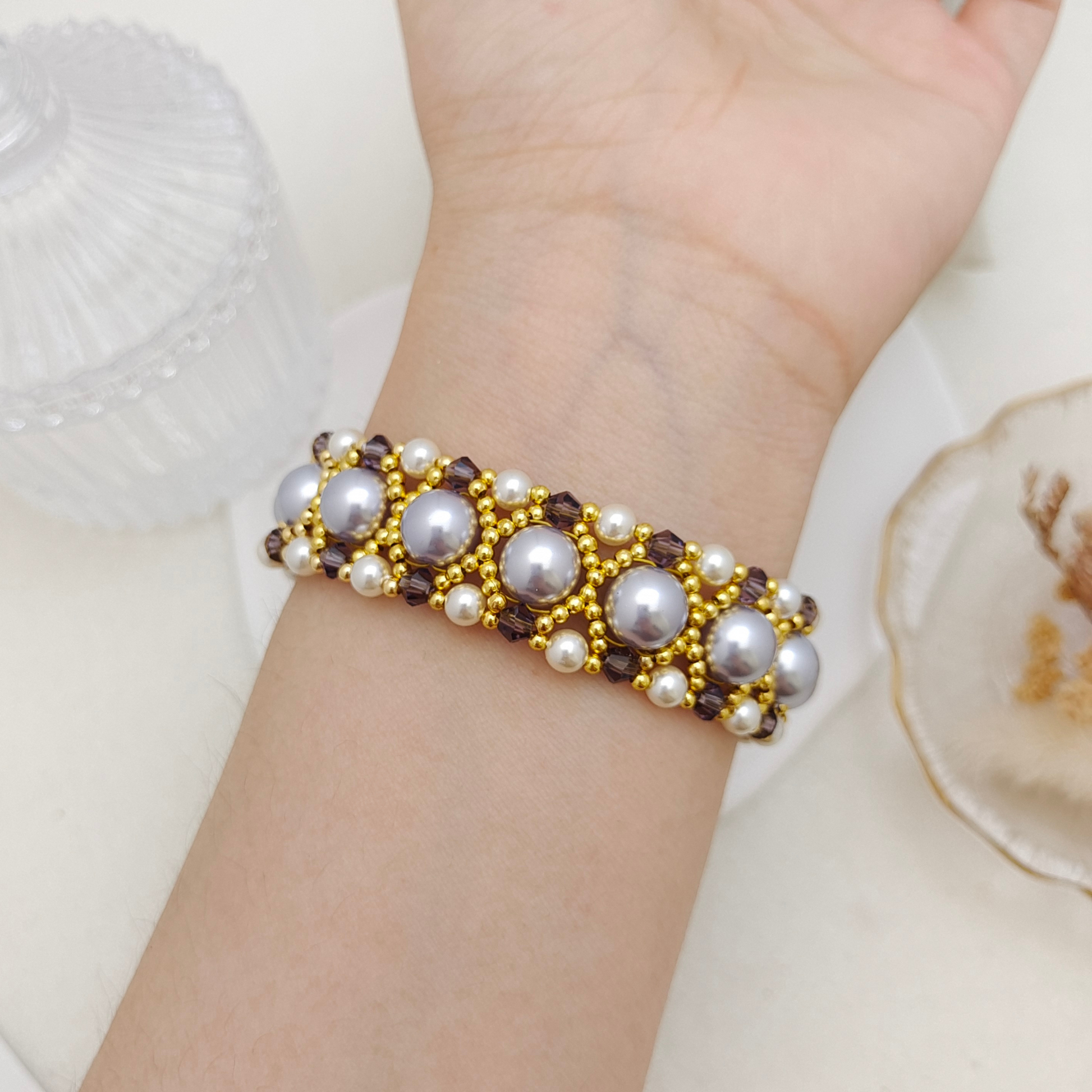 【No.113】DIY Beading Kit | Violet Pearl Weave Bracelet Materials + Full Tutorial | Pearls, Crystal Beads & Clasp Set