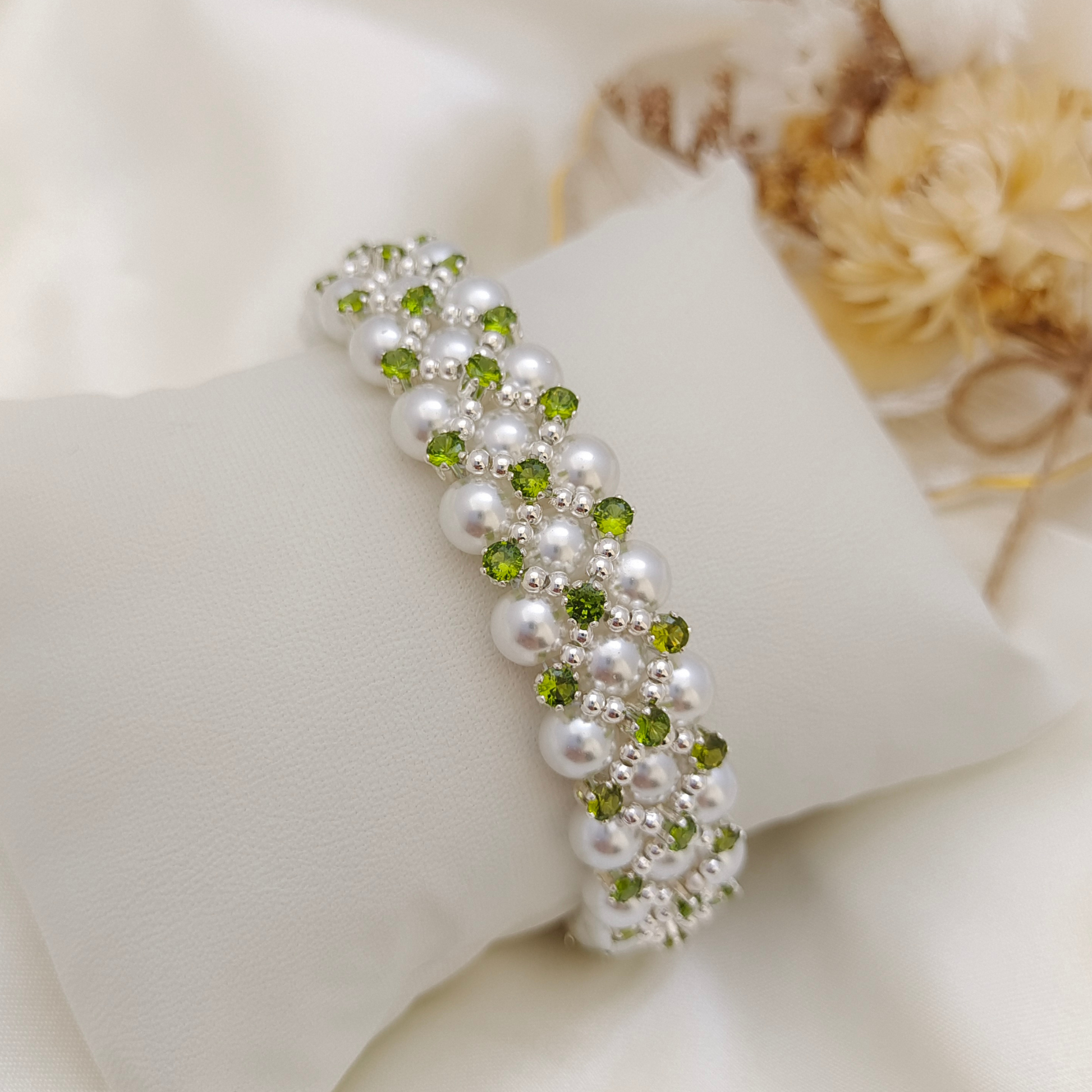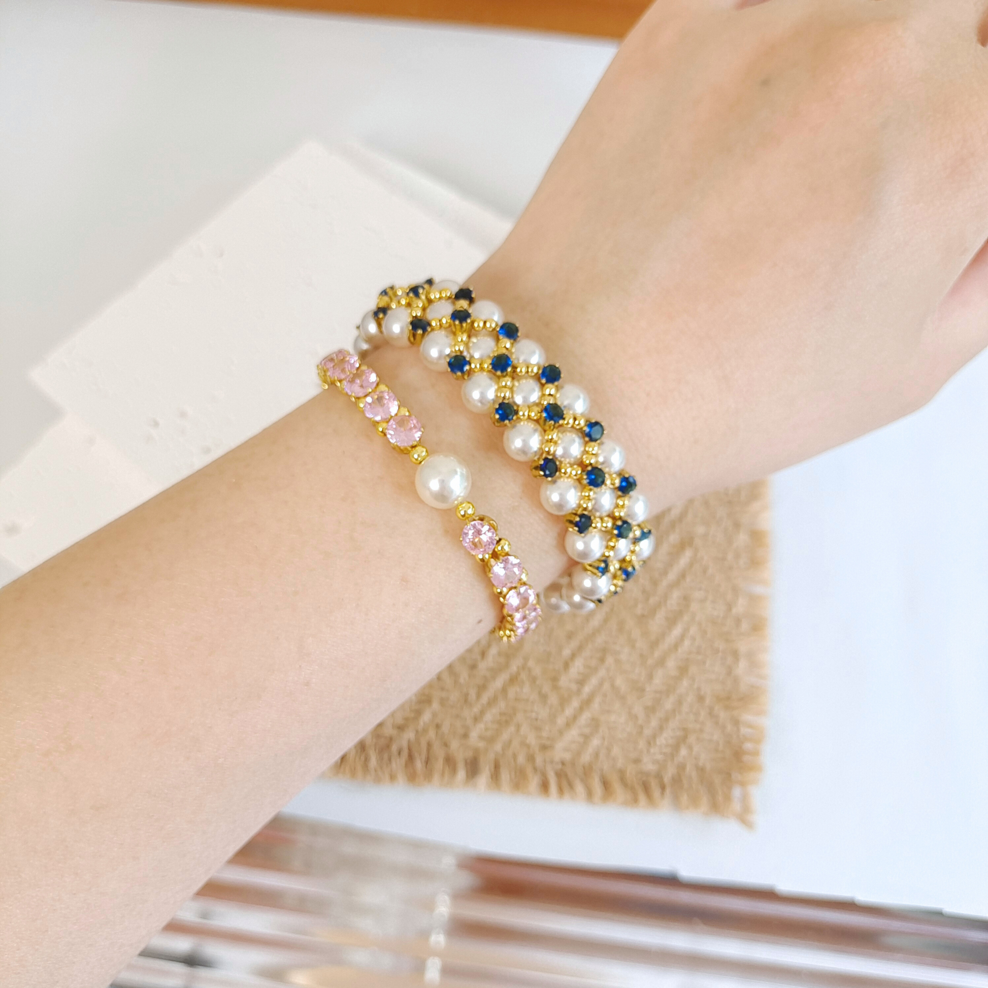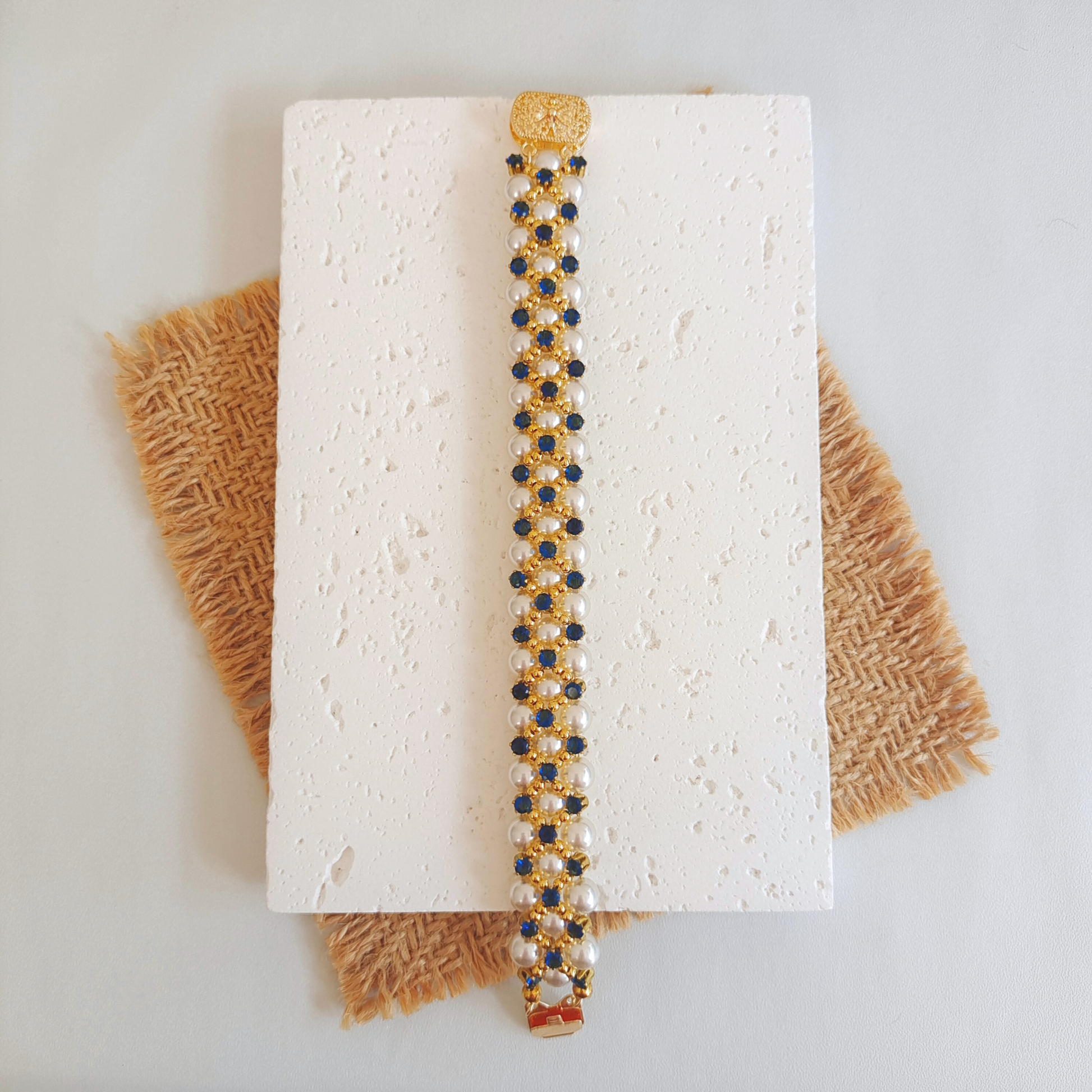 【No.45】 DIY Bracelet Craft Kit – Blue Phantom Beaded Design with Pearls & Sapphire Crystals Beading Set