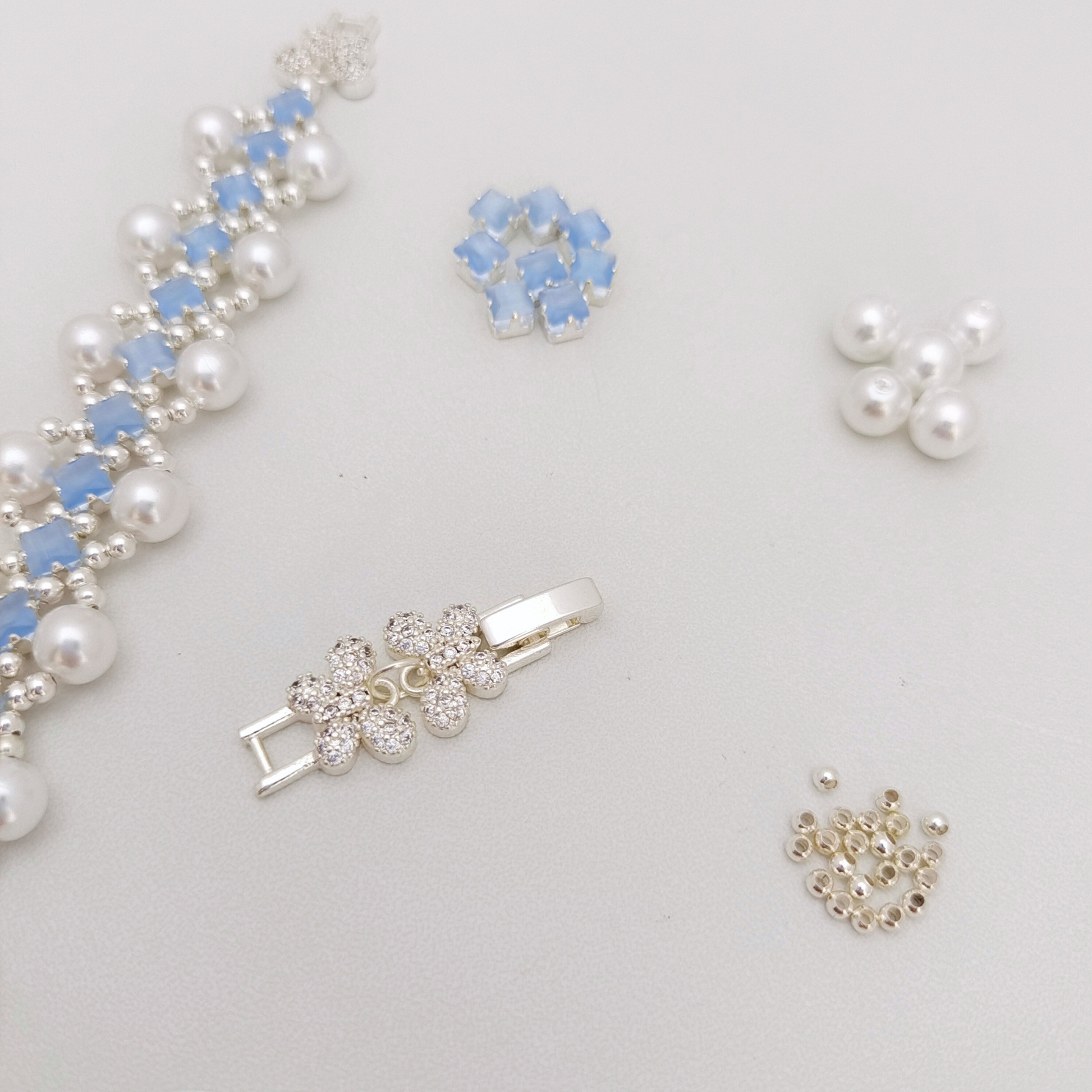 【No.86】DIY Bracelet Kit – French Court with Pearls & Cat Eye Square Beads