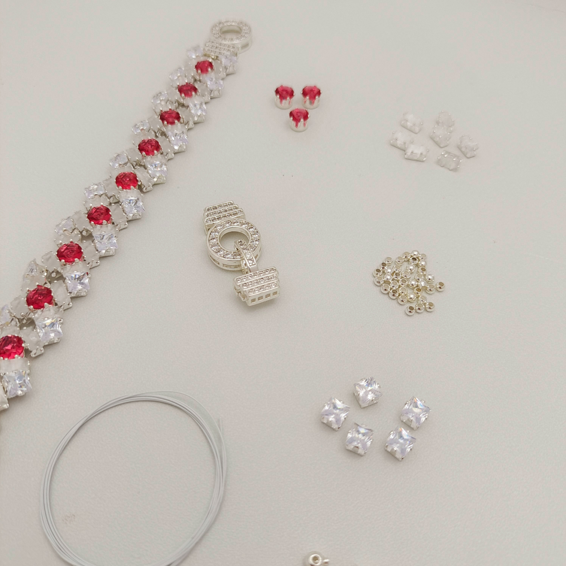 【No.100】DIY Bracelet Kit – “Lily” with Rectangular, Square & Round CZ Stones | Full Tutorial Included