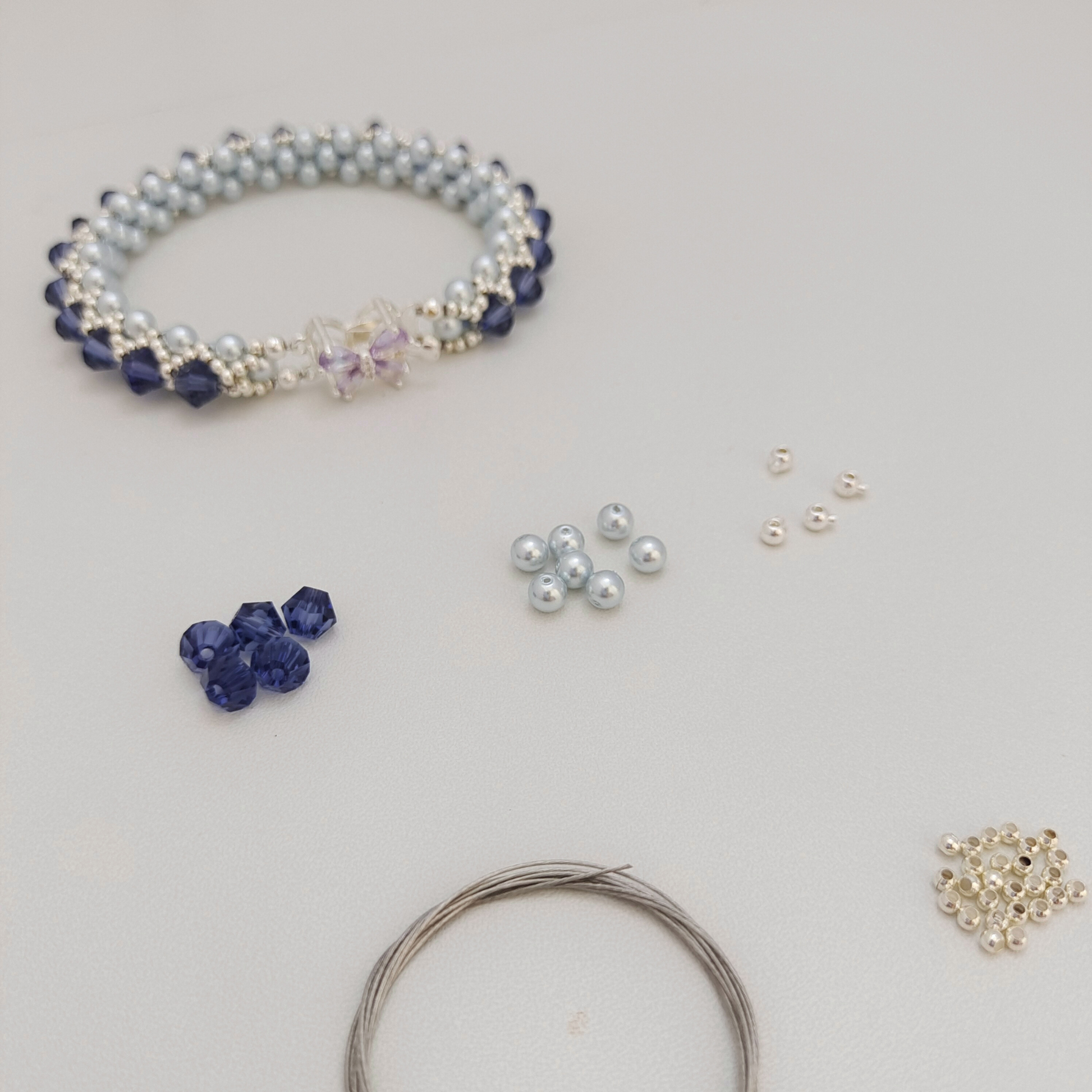 【No.91】DIY Bracelet Kit – Lotus Lilac | Lilac Crystal & Blue Pearl | Full Video Tutorial Included