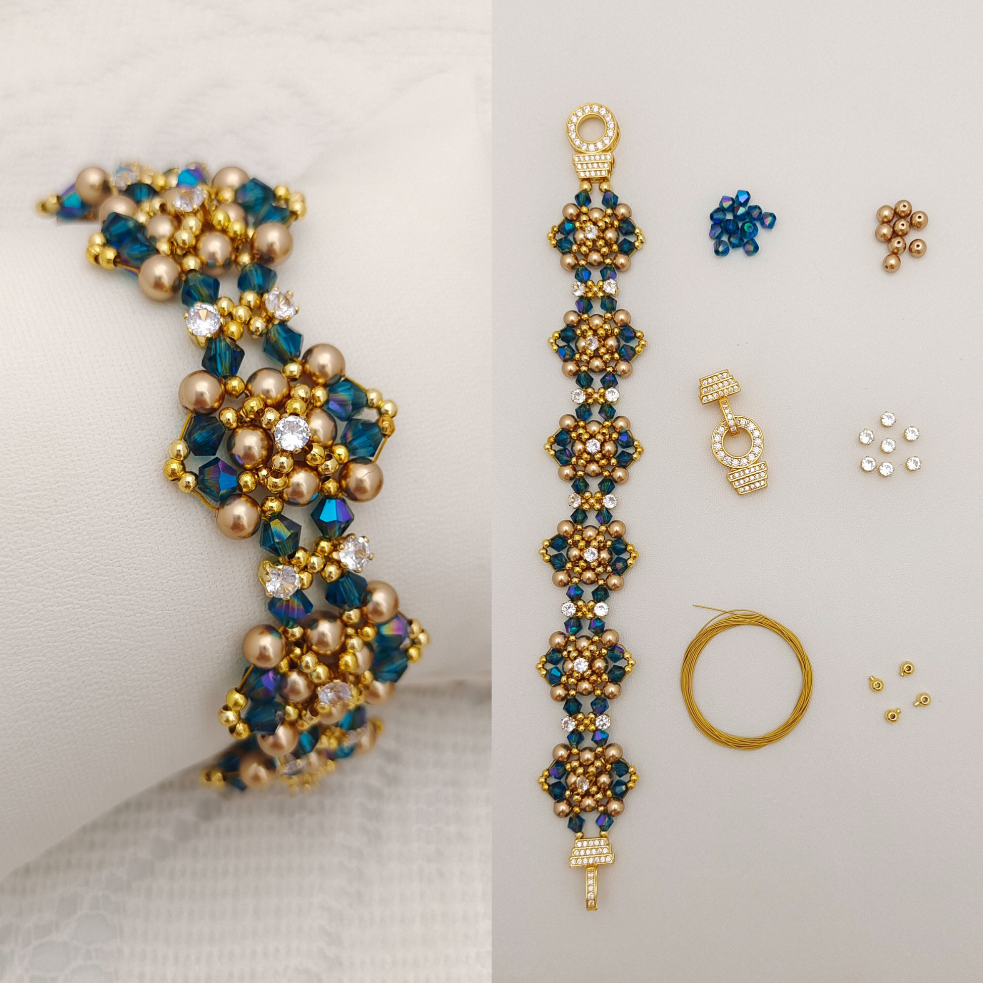 【No.102】DIY Bracelet Kit – “Phantom Opera” Crystal & Pearl with O-Clasp | Complete Jewelry Making Set