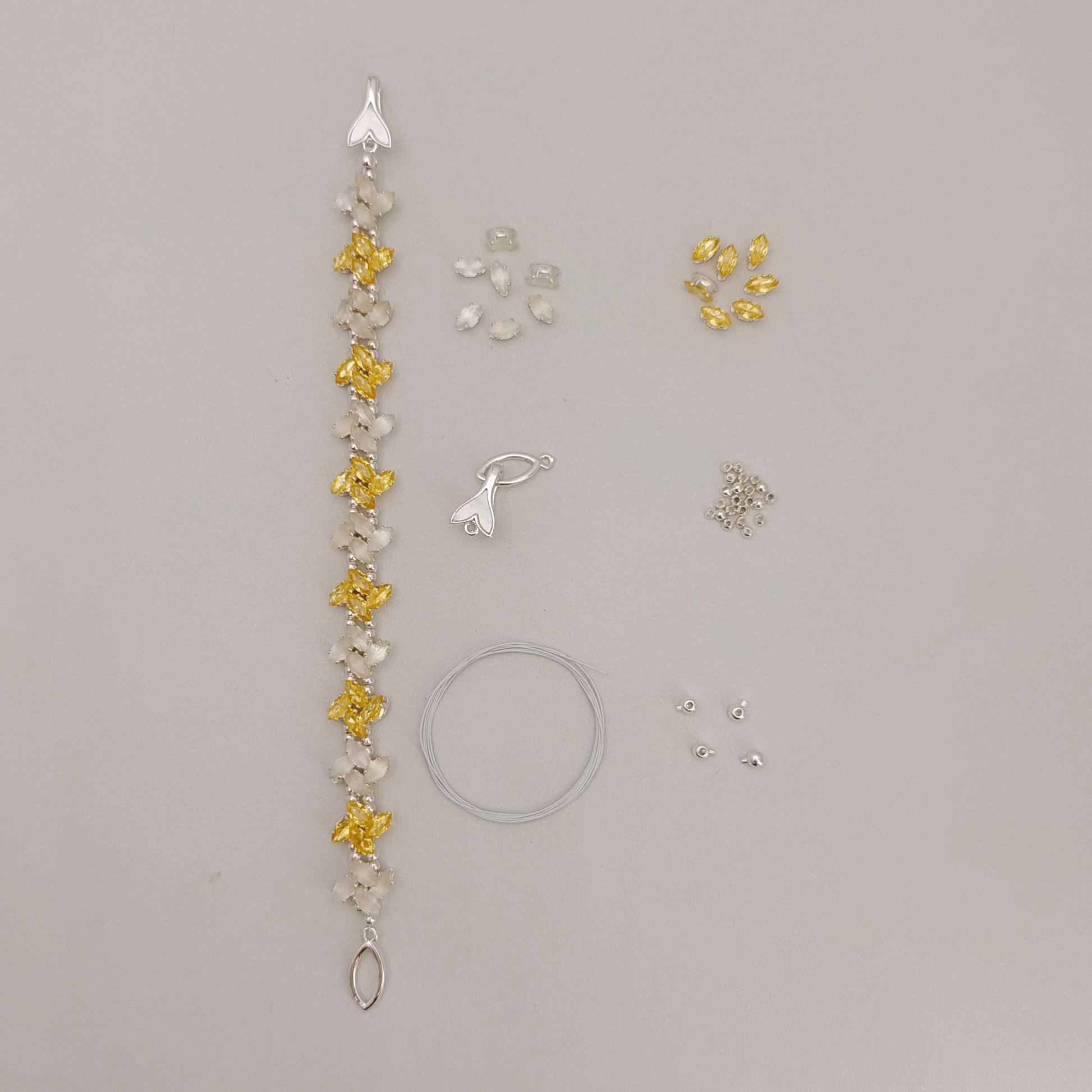Add a whimsical twist to your jewelry-making collection with the “Pinwheel” bracelet DIY kit! This kit combines sparkling crystal marquise zircon beads and dreamy cat eye marquise stones, finished with minimal silver seed beads and a sleek mermaid tail clasp. Whether you’re a beginner or seasoned crafter, the kit includes step-by-step instructions on our YouTube channel @iFCraftorium (Kit #81) for a relaxing and creative experience.