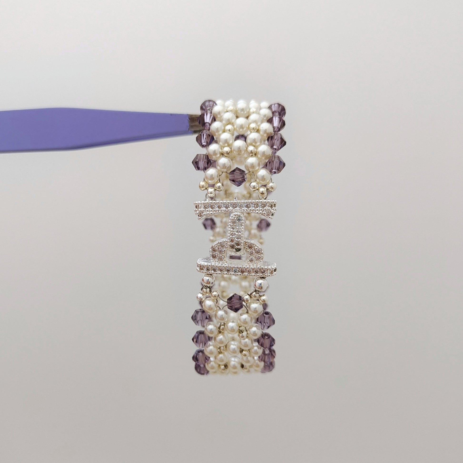 Elevate your style with the “Chanel-Inspired Elegance” handmade bracelet, a timeless blend of sophistication and charm. Featuring 3mm pearls, 4mm diamond-shaped beads, and 2mm seed beads, this design weaves a delicate yet luxurious texture. Finished with a lollipop triple-row clasp, the bracelet offers both durability and elegance, making it perfect for daily wear or special occasions.