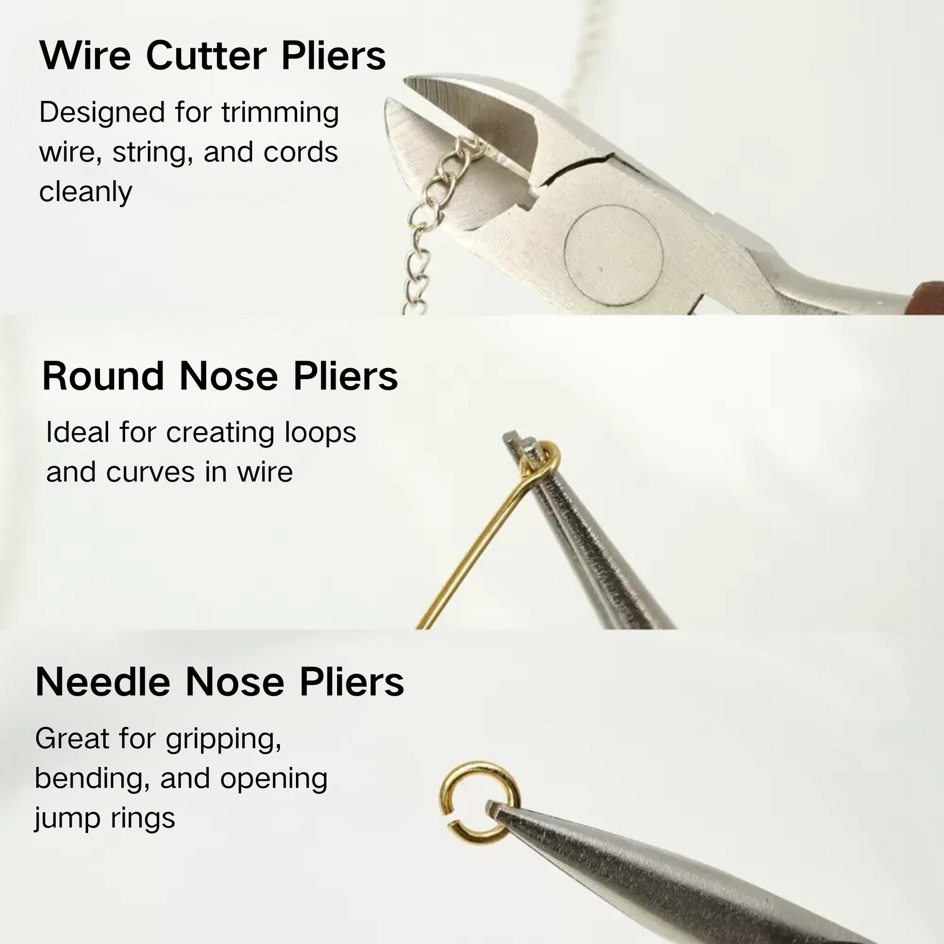 Essential Jewelry Pliers Set – Round Nose, Chain Nose & Cutter Pliers for DIY Bracelets, Necklaces & Earrings