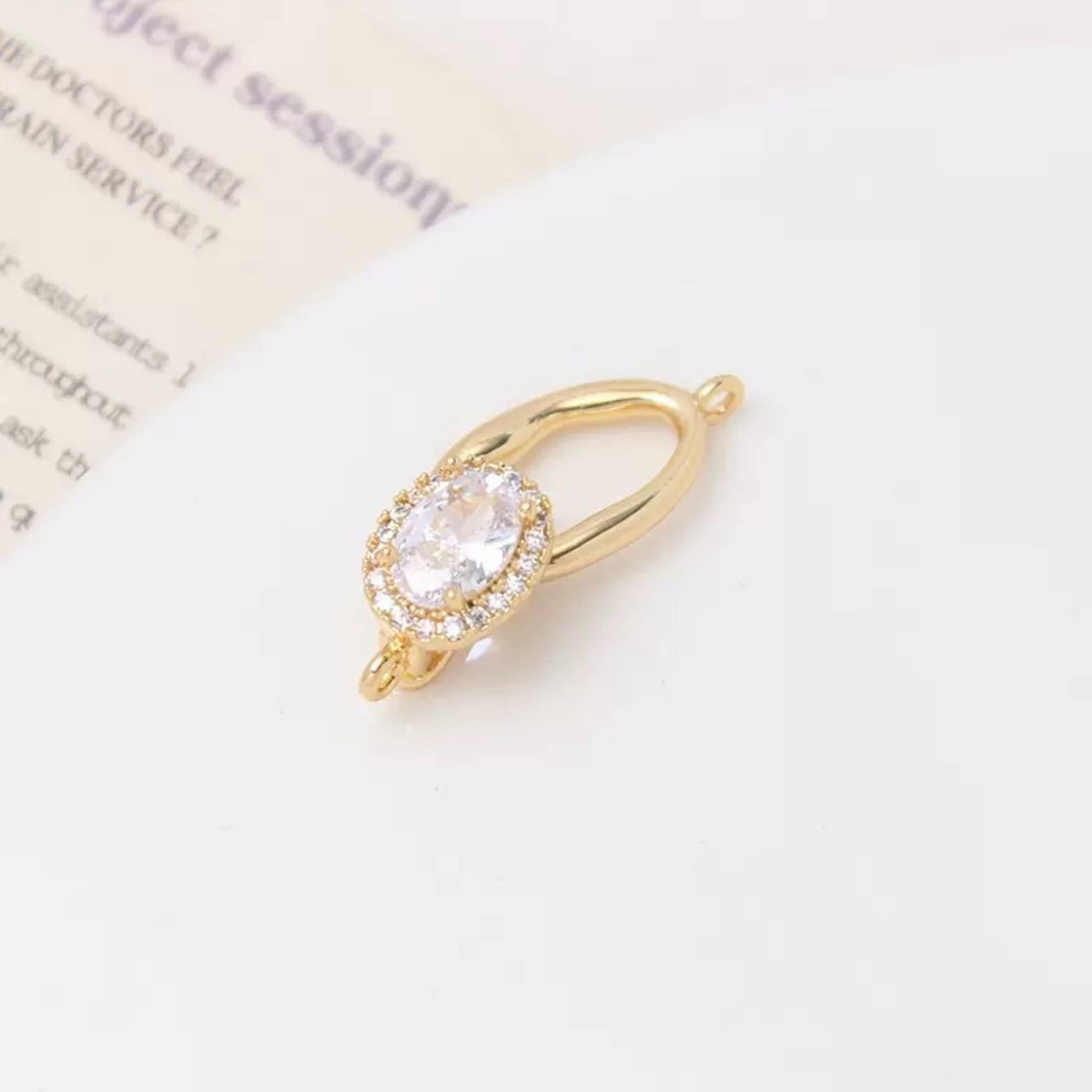 Elevate your handmade jewelry with this oval zircon clasp connector, designed for both elegance and functionality. Featuring a brilliant 8×12mm oval-cut cubic zirconia, prong-set in high-shine 14K gold or platinum-tone alloy, this piece is perfect for bracelets, necklaces, or as a focal connector in your DIY designs.