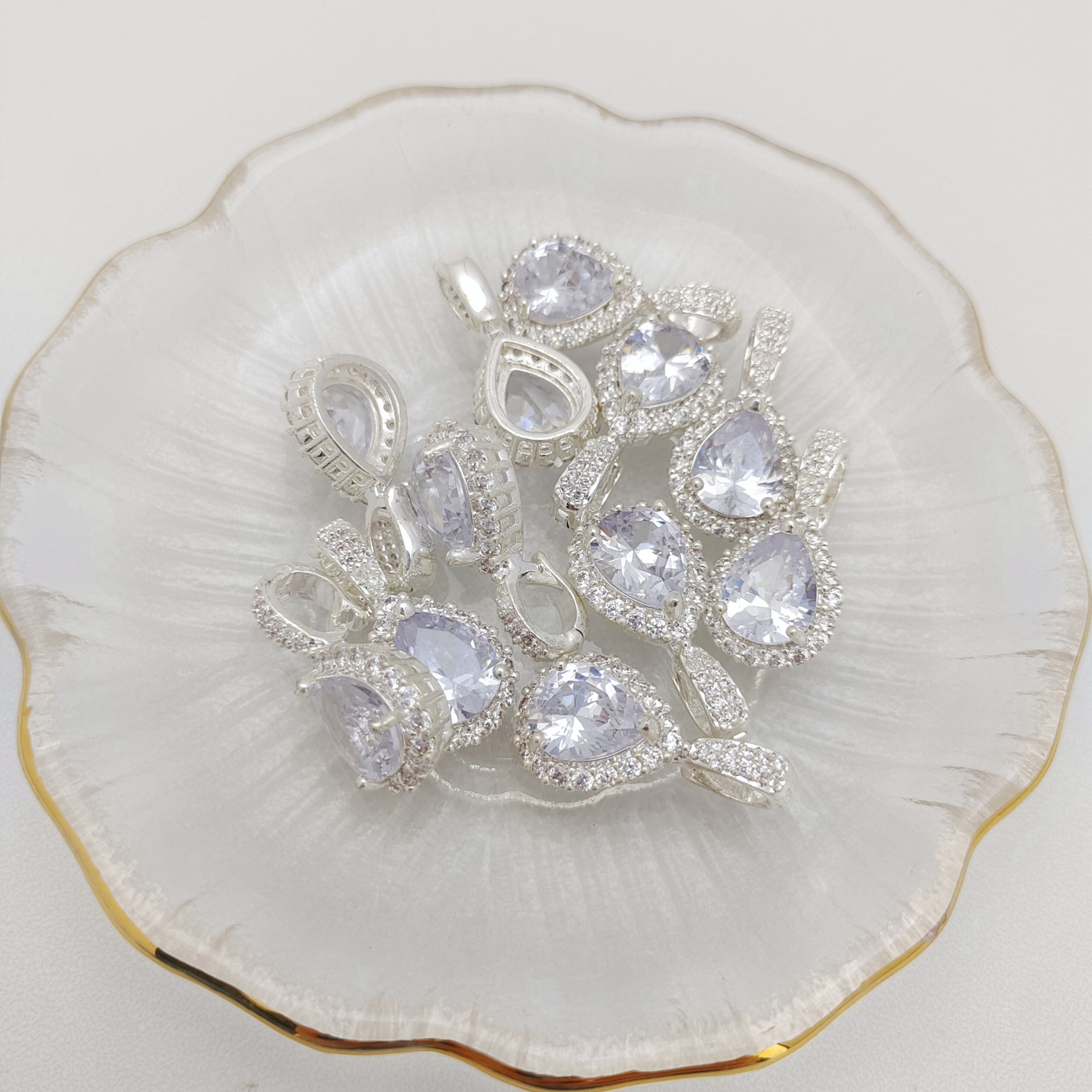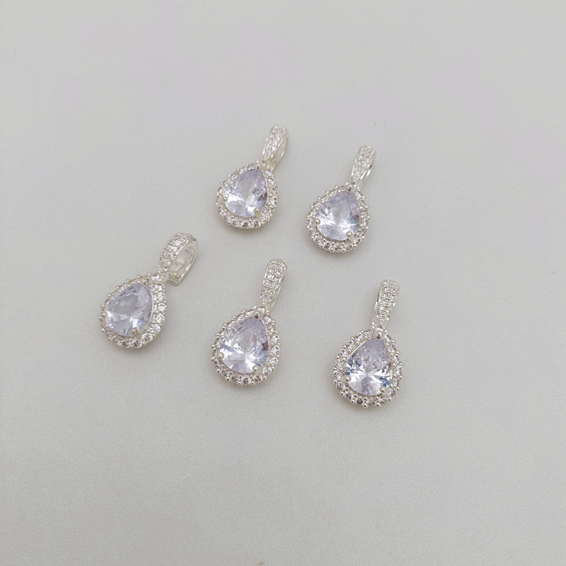 【B14】1PCS Teardrop CZ Pendant Clasp – Ice Blue, Silver Base, Multifunctional DIY Jewelry Connector